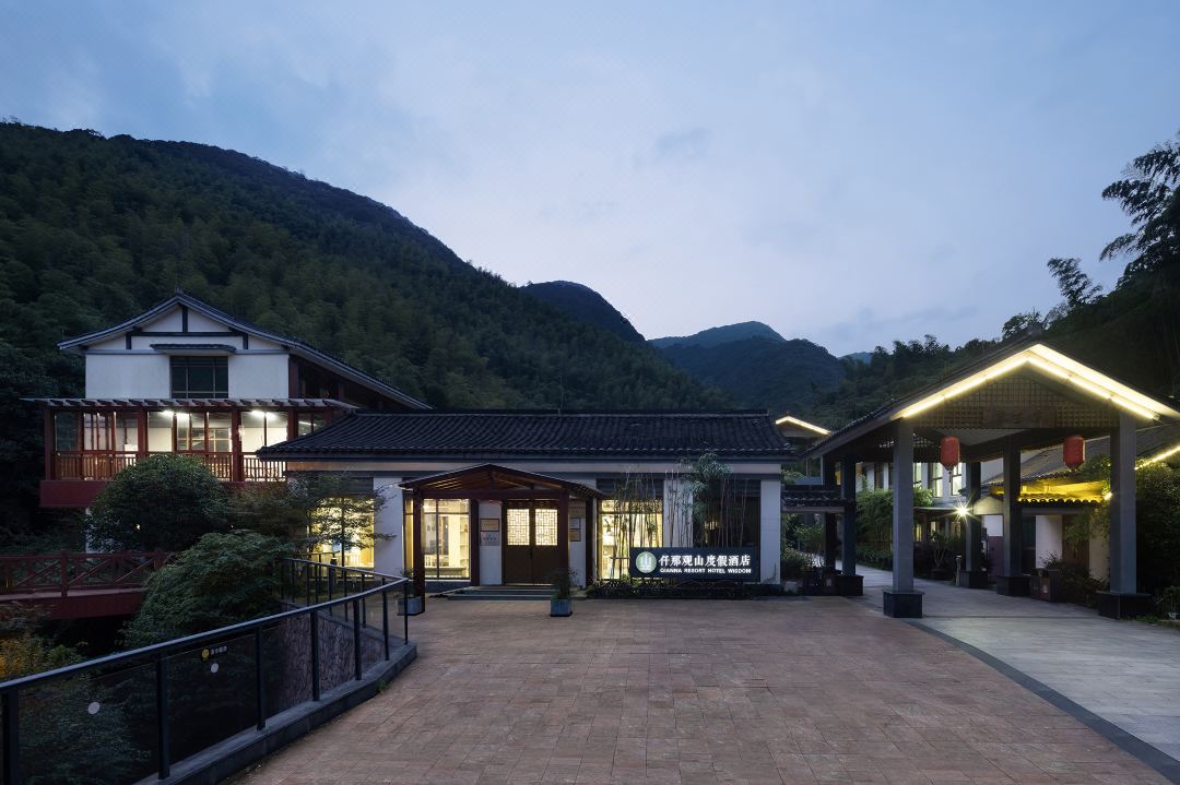 坐落于浙江省湖長興縣水口鄉顧渚村山腳下,沿著鄉村公路一路向上,一路上竹聲濤濤,偶有清脆鳥鳴回響山間,好不愜意!酒店由餐飲、客房和會議組成,建筑各功能之間由景觀連廊連接,圍合后形成一個內向性庭院。
