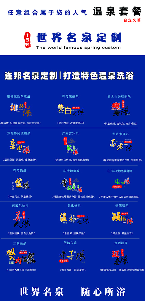 展會(huì)期間將展出14大名泉定制系統(tǒng)人工溫泉設(shè)備,觀展者通過泉質(zhì)各異的體驗(yàn)把溫泉療養(yǎng)理念提升到完美至上、心神合一、泉人合一的養(yǎng)生境界。