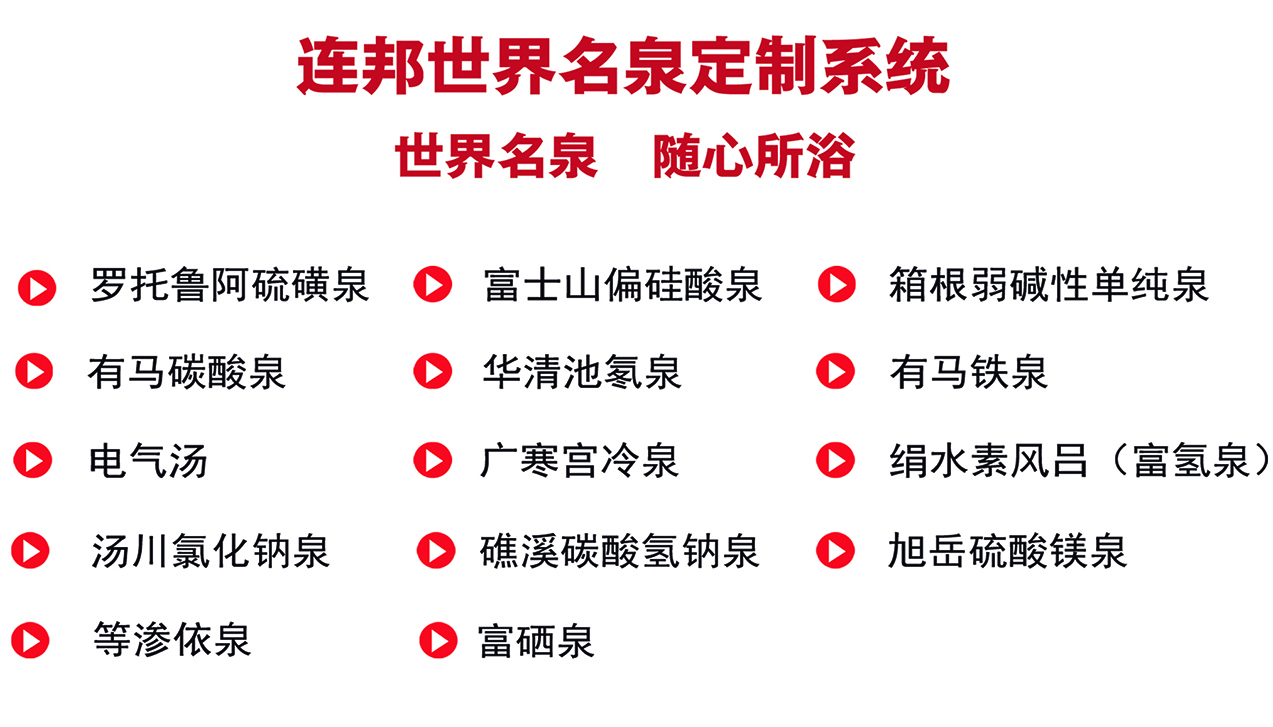 國內(nèi)眾多都市溫泉企業(yè)引入連邦溫泉科技人工智能溫泉設(shè)備(也叫溫泉生成器或溫泉制造機(jī)),打造日式大健康療養(yǎng)模式,其中如閭山大朝陽溫泉山城、杭州海茵匯、長春九州溫泉會館、鞍山千山溫泉水上樂園等等,這些聞名遐邇的高品質(zhì)溫泉經(jīng)營地所涌動的溫泉水均來自連邦LBH人工溫泉設(shè)備,泉水中富含多種有益人體的元素,且元素含量遠(yuǎn)超同類標(biāo)準(zhǔn),擁有較高的養(yǎng)生康養(yǎng)價(jià)值。另外,其世界名泉定制系統(tǒng)涵蓋全球14種溫泉泉種,卓越的療養(yǎng)功效更是有口皆碑,足以成為溫泉經(jīng)營中的一大火熱賣點(diǎn),成功吸引越來越多的外地與本地游客前來旅游消費(fèi)。