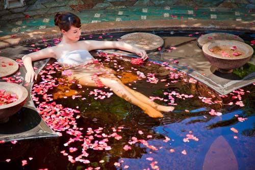 5.泡溫泉時,記住合上雙眼,以冥想的心情,緩緩地深呼吸數(shù)次,才能真正地釋放身心壓力。