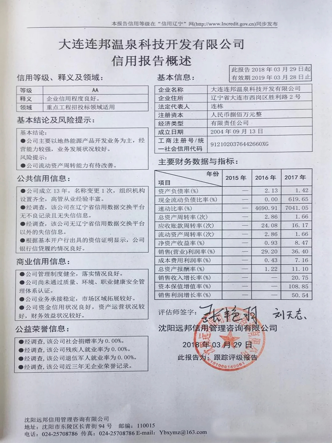 近日,連邦溫泉科技通過遼寧省發改委信用等級評審,再次榮獲AA級企業信用殊榮。