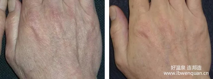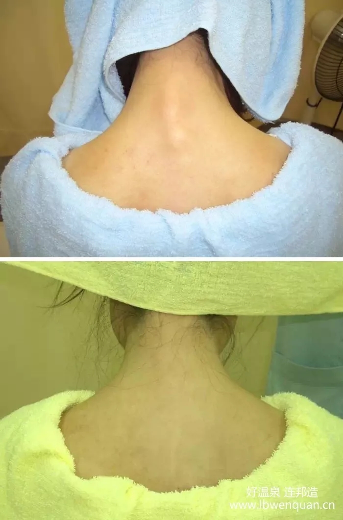 浸泡高濃度碳酸泉,刺激血管引起毛細(xì)血管擴(kuò)張而致皮膚潮紅,改善皮膚血液循環(huán),可以增強(qiáng)皮膚的抵抗力,翻紅的部分在出浴之后會(huì)變白,效果非常的明顯。